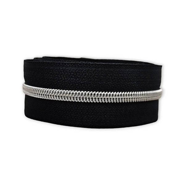 Pure Black - #S3 Silver | Nylon Coil Zipper Tape | 5 meter